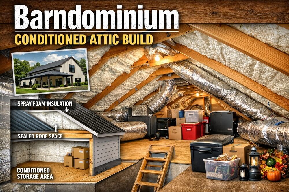 The Barndominium Conditioned Attic Build: Turning the Truss Space into a Sealed, Insulated Storage Area